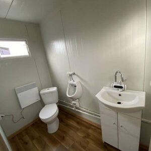 Contair Office 5 x 2,40 m Sanitär (Urinal, WC, Duschwaschbecken). Der Stern unserer Büroscontainer. Es kann bewohnbar sein und für alle anderen privaten Bedürfnisse als Fachleute Ihrer Wahl verwendet werden. Wie Sie in der Fotografie sehen können, haben Sie das Vorhandensein eines vollständigen Fensters. Auf diese Weise können Sie mehr Helligkeit haben, Sie können mehr draußen sehen, Sie sind weniger wahrscheinlich in einem Behälter. Es kann auch dank seiner abnehmbaren Natur vorübergehend verwendet werden.