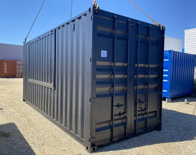 Ein Fenster befindet sich an der langen Wand des Behälters und bietet hervorragende Sichtbarkeit und natürliches Licht im Inneren.