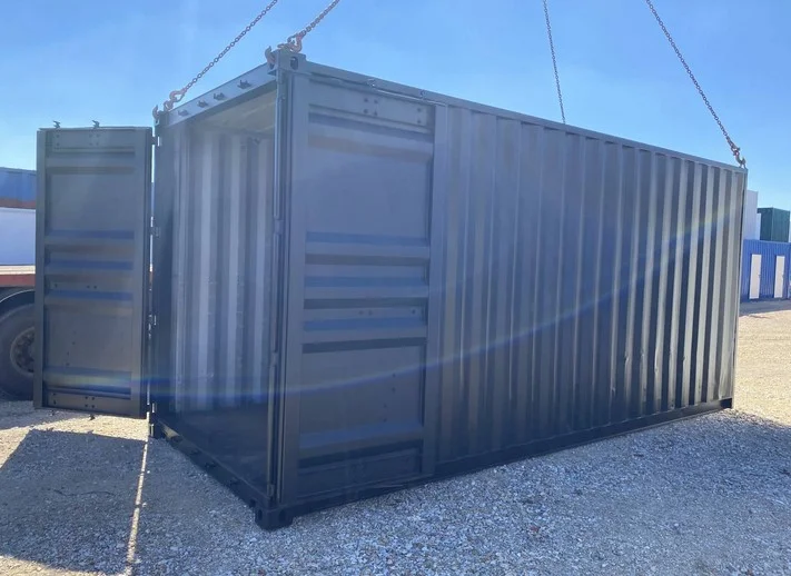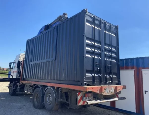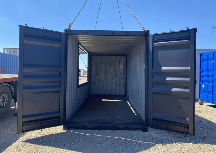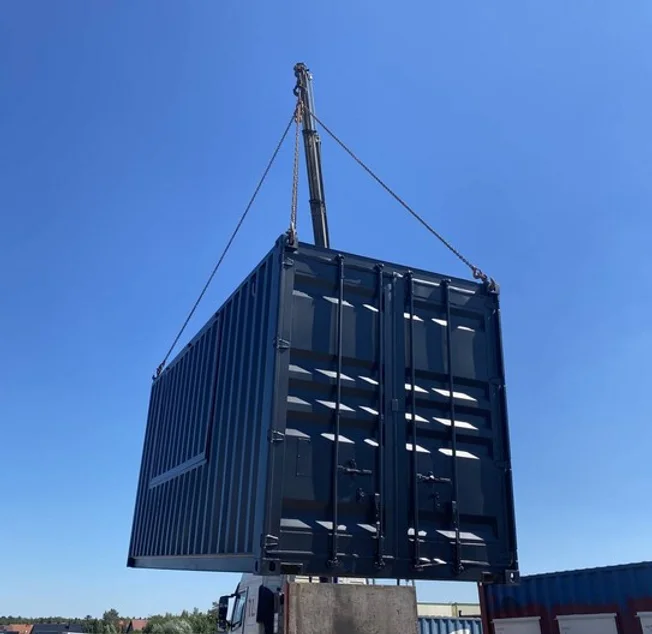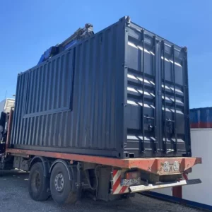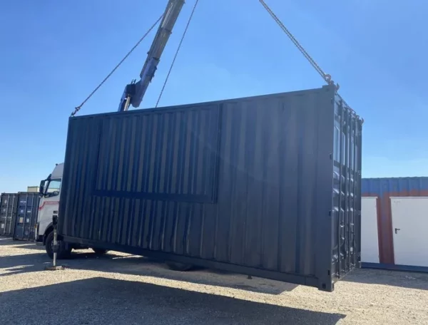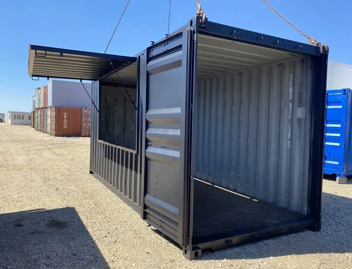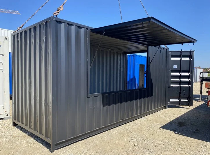 Modifizierte Version: Der Container wurde personalisiert, um den spezifischen Anforderungen im gastronomischen Sektor zu erfüllen und gleichzeitig seine ursprüngliche Solidität und Sicherheit beizubehalten.