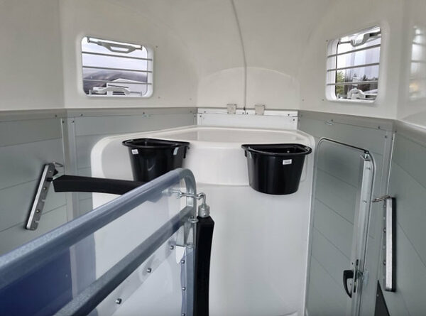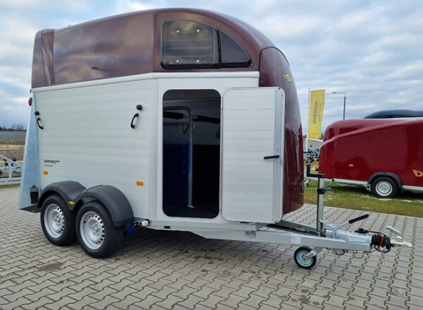 Der Humbaur Xanthos Aero 2400 Trailer mit Polsterung und Seitentüren wurde entwickelt, um die Erwartungen der anspruchsvollsten Reiter zu erfüllen. Dank seines aerodynamischen Designs, des Equidrive® -Chassis und seiner anodierten Aluminiumstruktur bietet es auf allen Reisenarten einen sicheren und komfortablen Transport von Pferden.