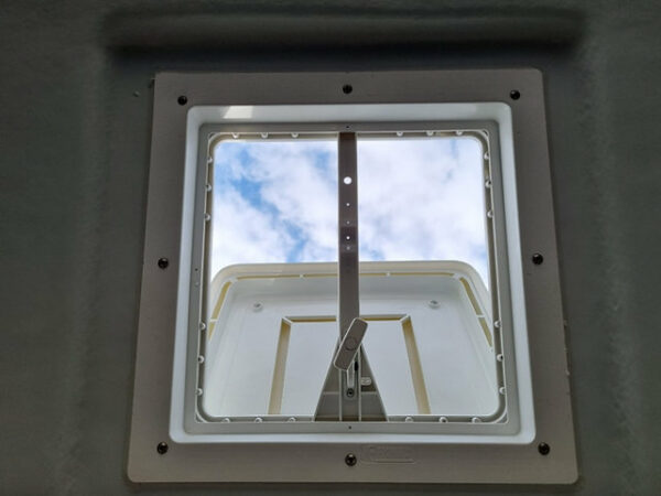 Seitentür mit Zugang zum Polster, der für zwei Stühle ausgestattet ist